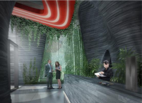 它開創(chuàng)性地給每個綠色空中架空層加入了極易識別的紅色建筑線條,伸出樓體之外,形成了摩天樹塔之上“綠色紅花”的感覺,它讓高樓變成生長、發(fā)芽和開花的“活建筑”,隨著季節(jié)改變色彩,簡單的墻面變得富有詩意,為城市提供了一座象征城市可持續(xù)發(fā)展的地標(biāo)級建筑。