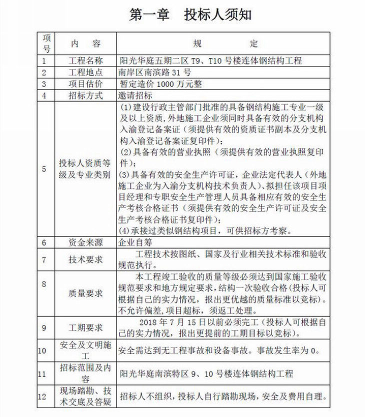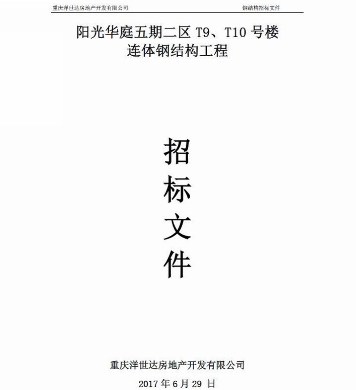 陽光華庭五期二區(qū)T9、T10號樓連體鋼結(jié)構(gòu)工程招標(biāo)文件