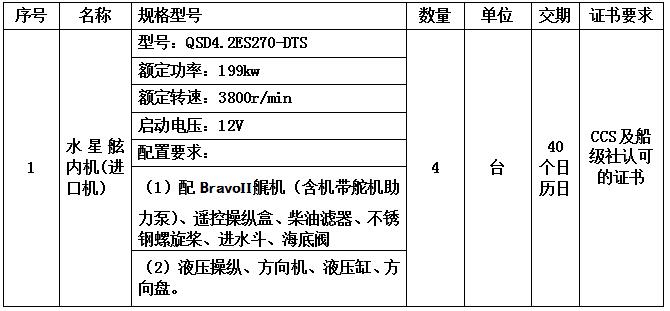 本項(xiàng)目適用于重慶帝力游艇制造有限公司:重慶市港航管理局9米海巡艇主機(jī)采購(gòu)部分,該項(xiàng)已具備招標(biāo)條件,先對(duì)該項(xiàng)目進(jìn)行單一來(lái)源采購(gòu)招標(biāo)。
