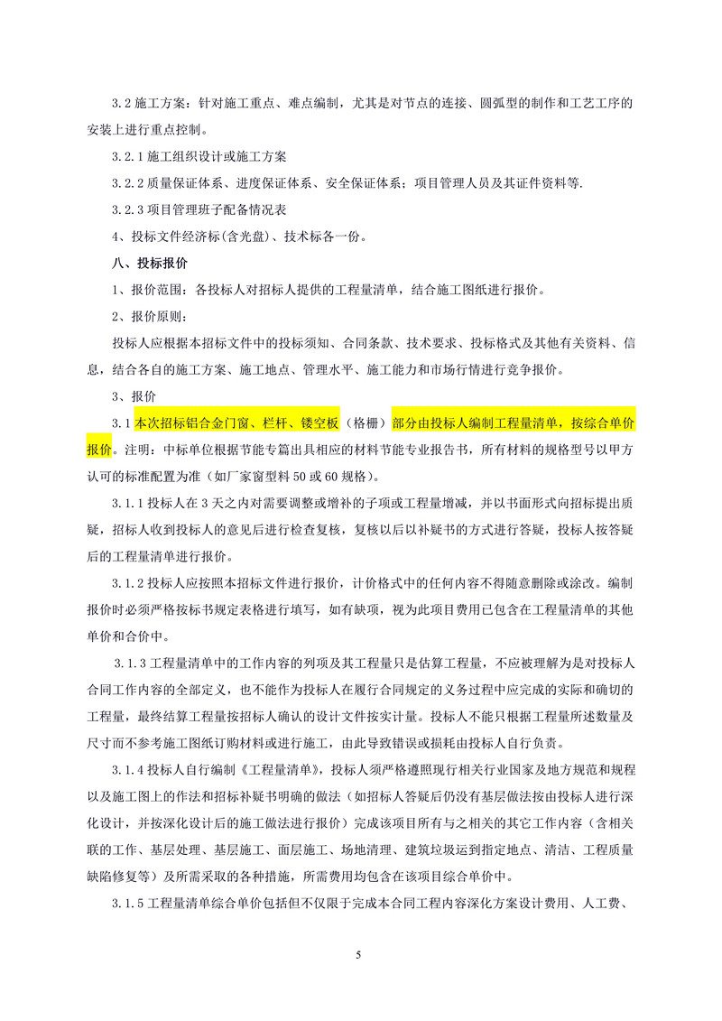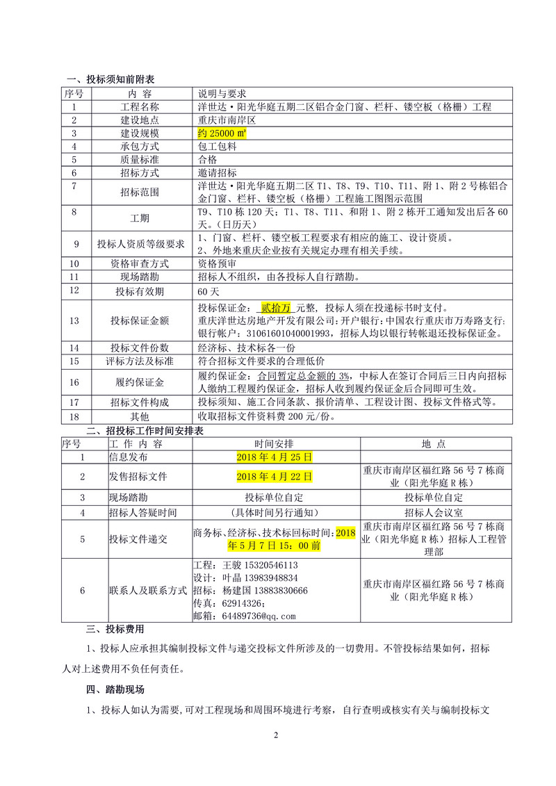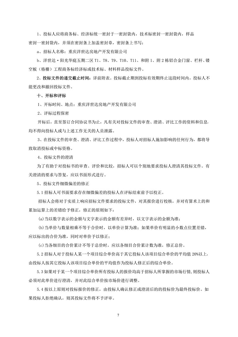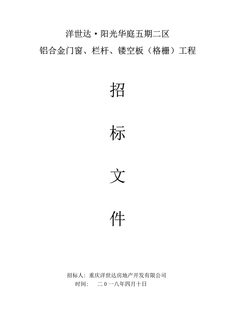 洋世達(dá)?陽光華庭五期二區(qū)鋁合金門窗、欄桿、鏤空板(格柵)工程招標(biāo)文件