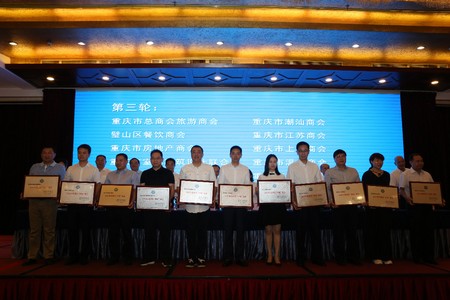 會上,市工商聯(lián)黨組副書記、副主席彭光遠宣讀了《重慶市工商聯(lián)2017年-2018年“四好”商會認定通報》,并對18家全國“四好”商會及34家市級“四好”商會獲得者進行了頒獎。房地產(chǎn)商會在會員單位的大力支持與共同努力下榮獲2018年度重慶“四好”商會榮譽稱號,這充分說明過去一年商會工作的開展得到認可,同時也凸顯出商會所擁有的實力和凝聚力,品牌價值和美譽度也得以展現(xiàn),商會發(fā)展的航船正大江奔流,踏浪前行。隨后,渝北區(qū)工商聯(lián)、中共龍?zhí)舵?zhèn)黨委、重慶市餐飲商會等8家單位分別作了大會交流發(fā)言。