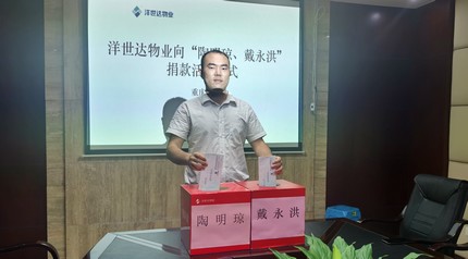 截止7月23日,洋世達(dá)集團(tuán)公司員工及長壽陽光世紀(jì)城業(yè)委會代表累計自愿捐款52832元。其中,陶明瓊28116元,戴永洪24716元。7月28日、30日集團(tuán)黨委、工會代表將這兩筆捐款送到了兩名員工手中,希望他們能夠頑強(qiáng)戰(zhàn)勝病魔,早日康復(fù)。