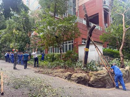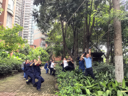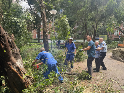 據統計:本次搶險救災,各小區累計重新扶直、修剪倒伏樹木200 余棵,清運斷枝100余車,清運木材12萬余斤,緊急搶險電梯20 余部。當最后一棵倒伏的樹木被清運完畢時,大家的衣服已能擰出水來,看著重新恢復整潔的小區,所有人都露出了欣慰的笑容。