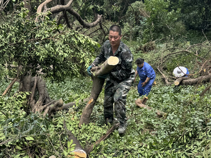 "黨員就應該啃最硬的骨頭!"趙書記身先士卒,帶領黨員們沖向最困難的"樹障清零"搶險現場。暴雨過后,40度的高溫炙烤著大地,黨員們頂著烈日鋸樹、搬枝,衣衫被汗水浸透又曬干,凝結出白花花的鹽霜。許多人的手掌磨出了血泡,大家卻笑稱:這是"黨員的軍功章"。