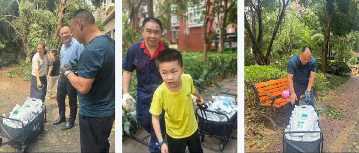 搶險一線的艱辛牽動著業主們的心。熱心的小區居民自發將冰糕、西瓜、礦泉水等慰問品送到現場工作人員手中。"你們辛苦了!"簡單的話語與一份份心意驅散了高溫的炎熱,驅散了身體的疲憊。這種雙向奔赴的理解,讓所有人員備受鼓舞,他們深知:大家修復的不只是小區的樹木、電梯、道路,更是業主們對美好生活的信心。