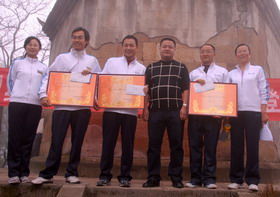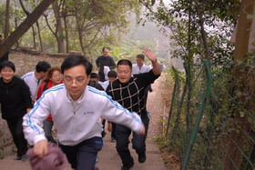 上午9時,大家來到江南體育館,整裝待發(fā),躍躍欲試。9點30分,隨著集團公司領導張副總一聲令下,參賽隊員齊向山頂奔去。半個小時左右,第一名參賽隊員成功登頂,書寫了南岸區(qū)民間登山成績的新記錄。全體參賽隊員充分發(fā)揚團隊精神,互相鼓勵,互相幫助,于10點30分全部攀上山頂。隨后,大家在文峰塔旁舉行了熱烈的頒獎儀式,物管公司代表隊、驕陽綠陽聯合代表隊、凱誼公司代表隊分別獲得一、二、三名。