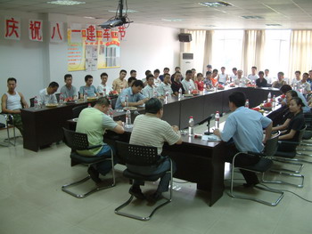 2006年8月1日下午,“陽(yáng)光華庭”二期會(huì)議室歌聲飛揚(yáng),歡聲笑語(yǔ),集團(tuán)公司“慶祝中國(guó)人民解放軍建軍79周年”活動(dòng)隆重舉行。全公司共50多名復(fù)員退伍軍人共同參加了此次活動(dòng)。集團(tuán)公司副總裁張志興、黨委書記譚邦強(qiáng)、物管公司有關(guān)領(lǐng)導(dǎo)出席了此次活動(dòng)。